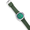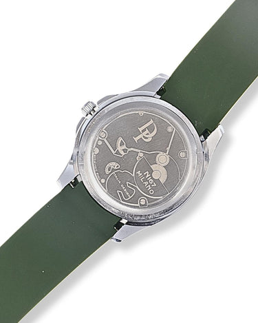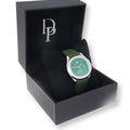 Colore Malachite, con dettagli bianchi ed acciaio.. Data a finestrella.