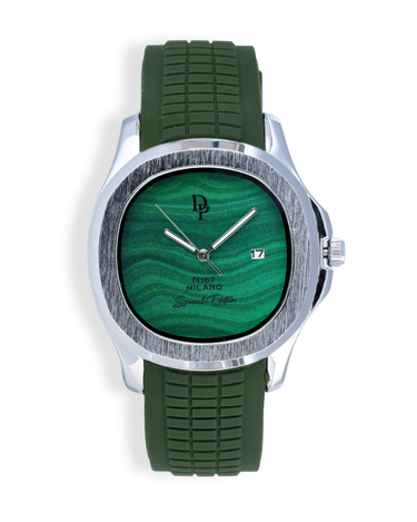 Colore Malachite, con dettagli bianchi ed acciaio.. Data a finestrella.